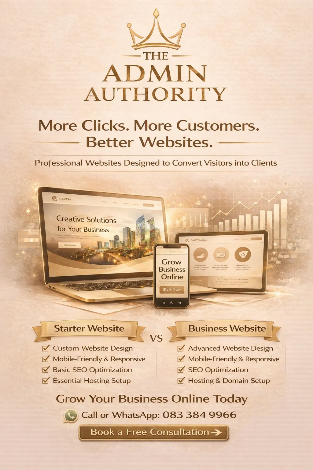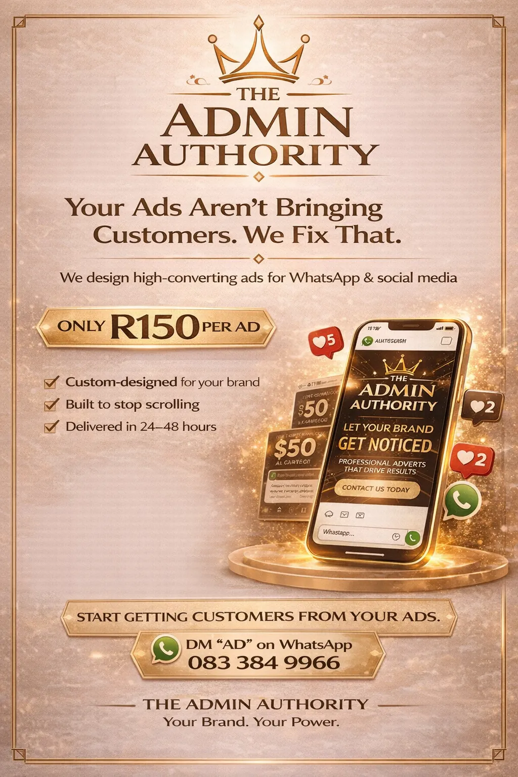Stand out online with professionally designed social media and WhatsApp adverts. At The Admin Authority, we create powerful, high-impact designs that capture attention, build brand authority, and help your business generate more leads and sales.